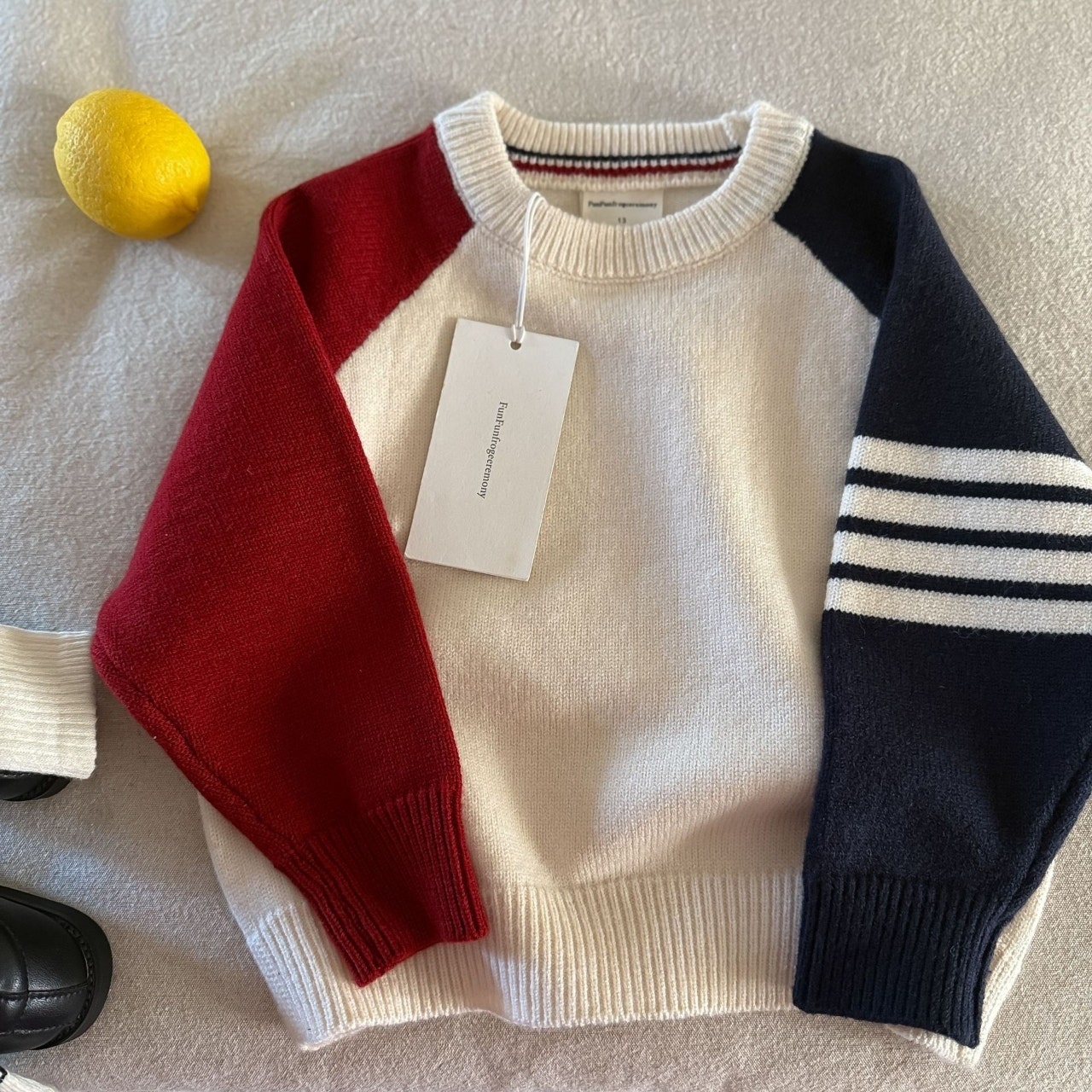 - [수입]26봄,소매배색네줄니트