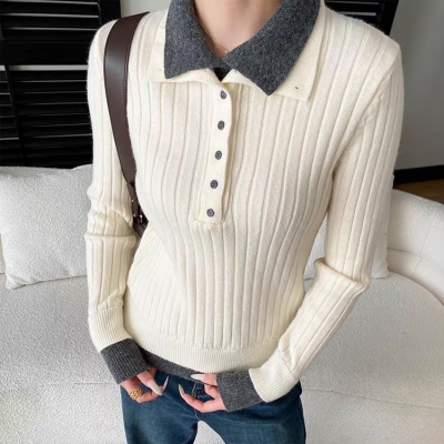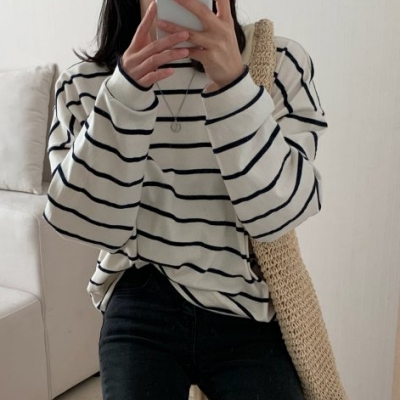 - on.[NT713]배색레이어드골지니트