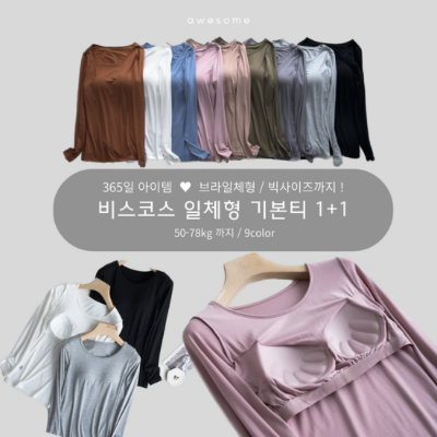 [수입] 비스코스 일체형 기본티 1+1 (-4/9마감)