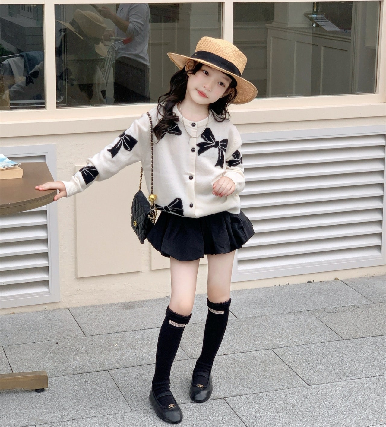 [수입]리본가디건펌킨스컷셋
